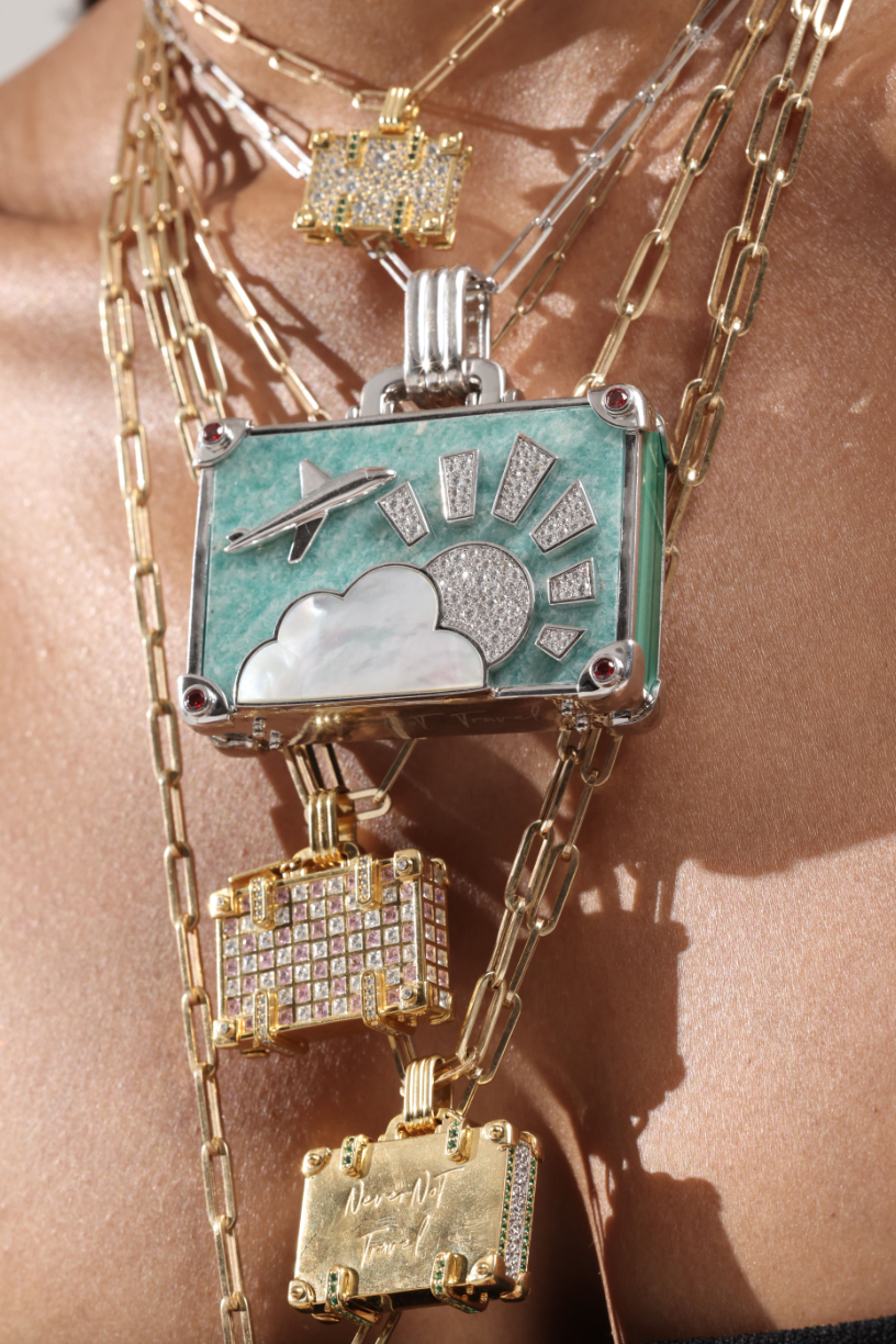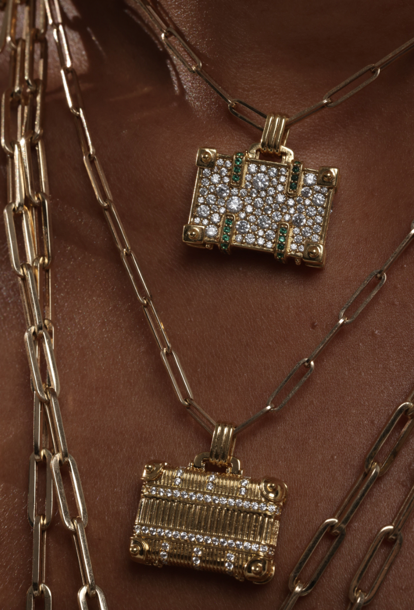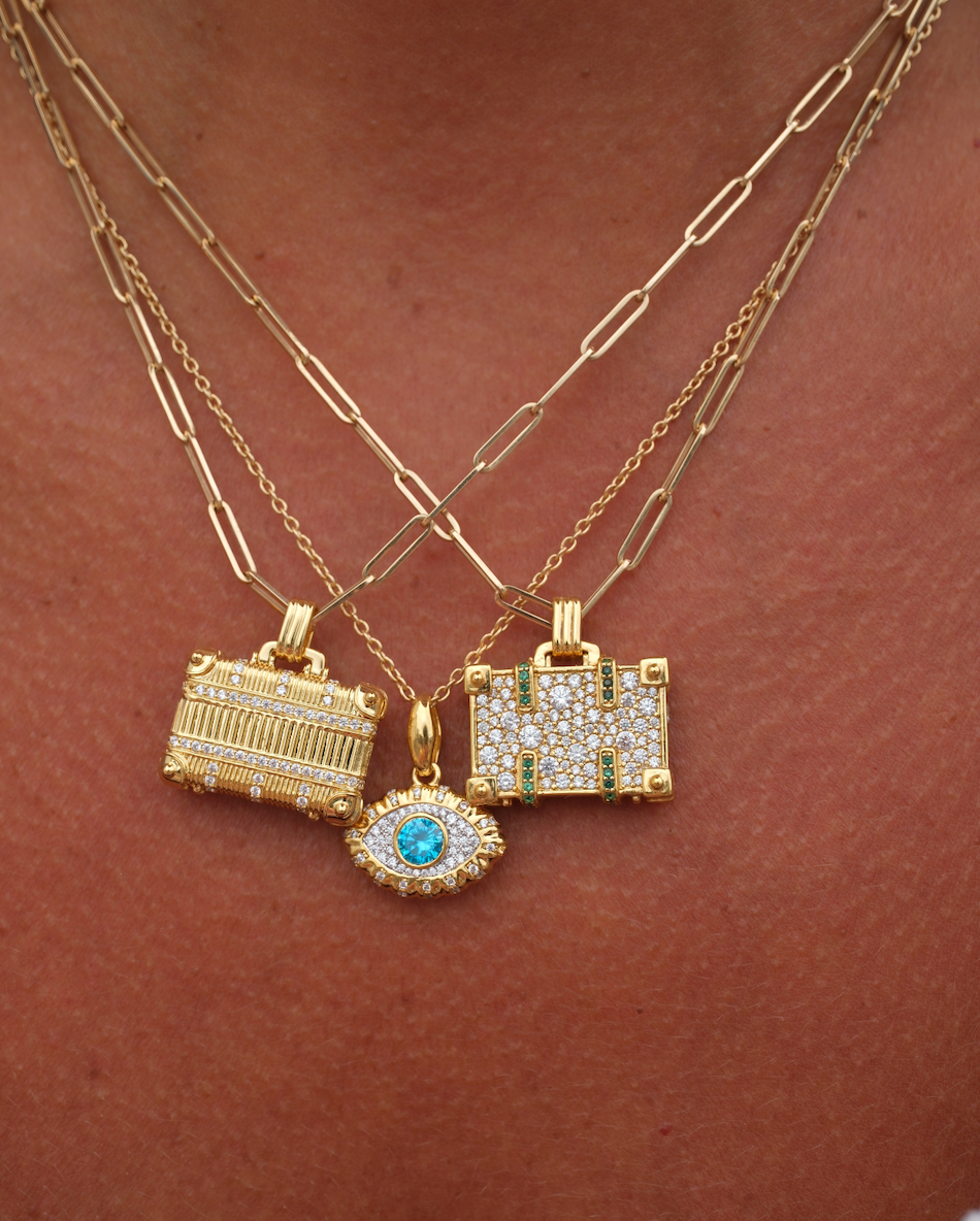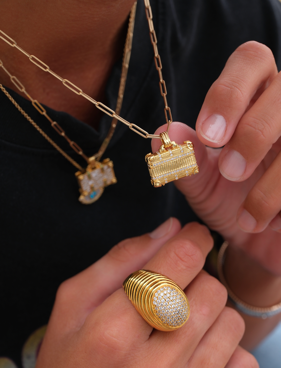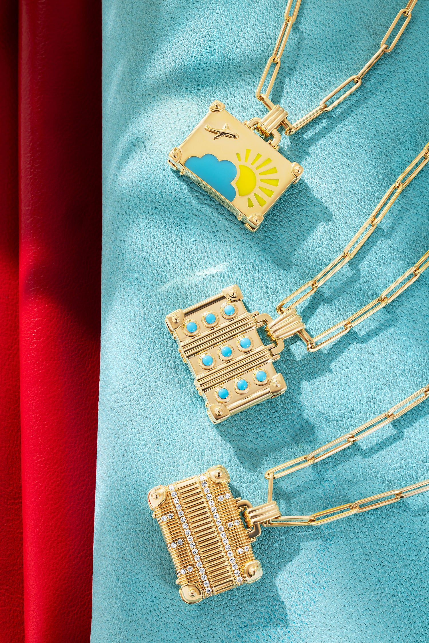 Crafted in 14K yellow gold and set with 0.38 ct of white diamonds, this mini suitcase pendant catches the light with every move. Sleek, subtle, and easy to wear, it’s a refined nod to adventure.