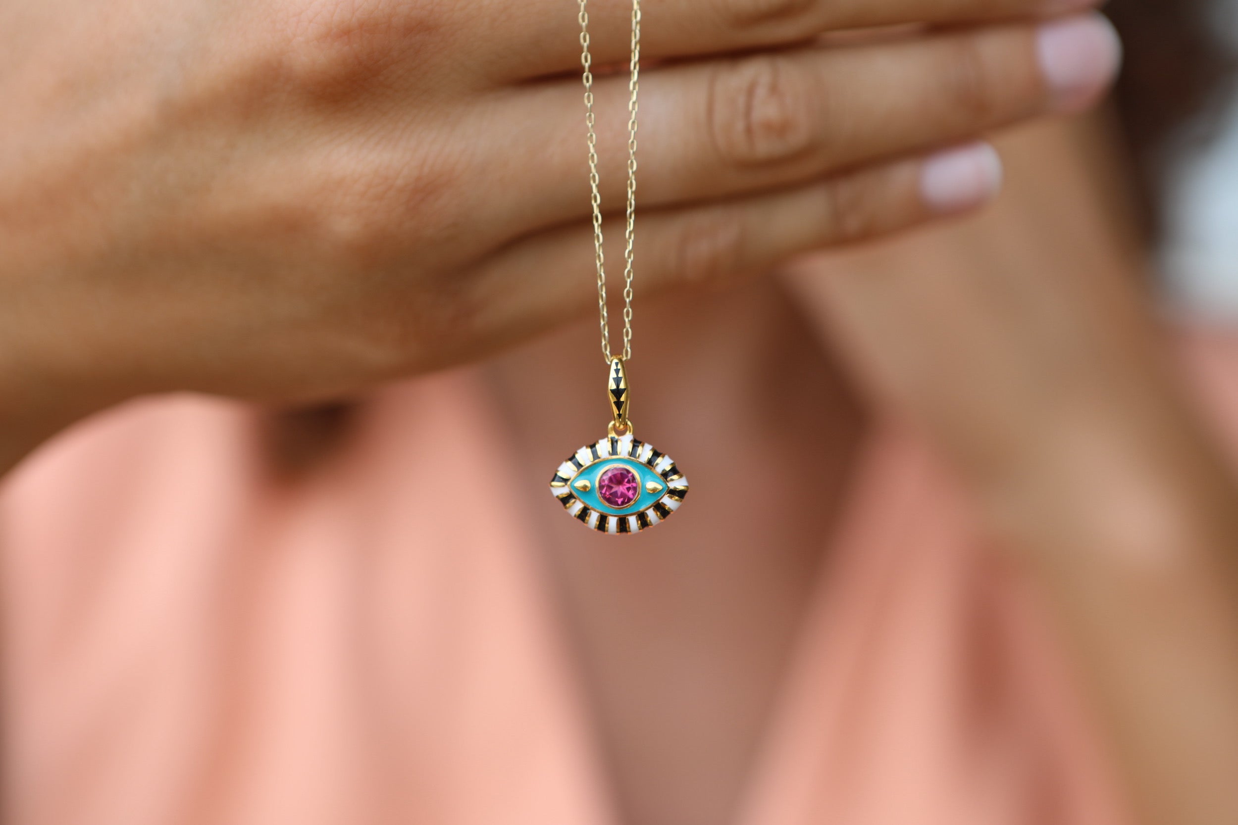 Life in Colour Collection eye necklace with topaz central stone is perfect piece to wear for everyday.