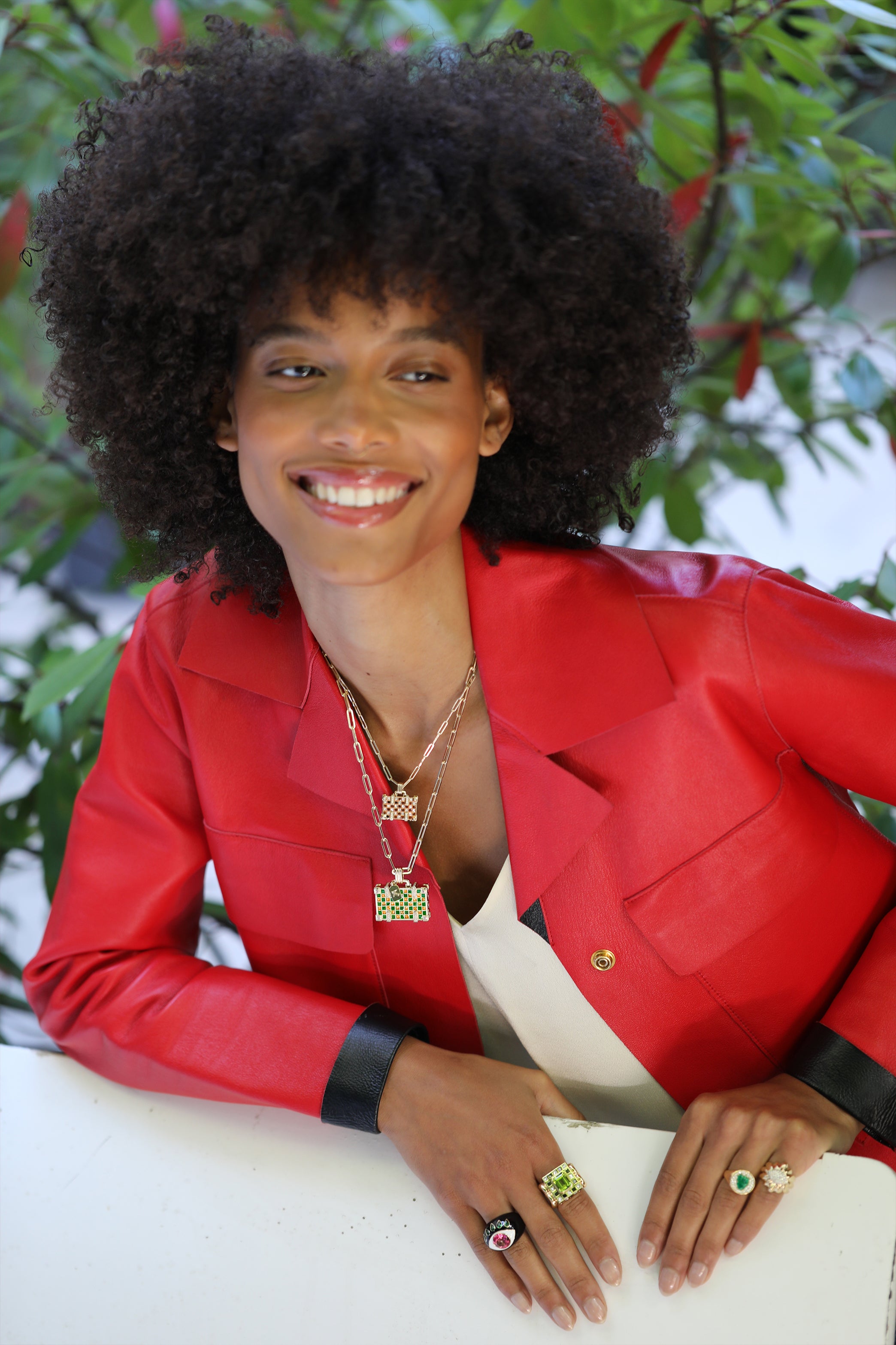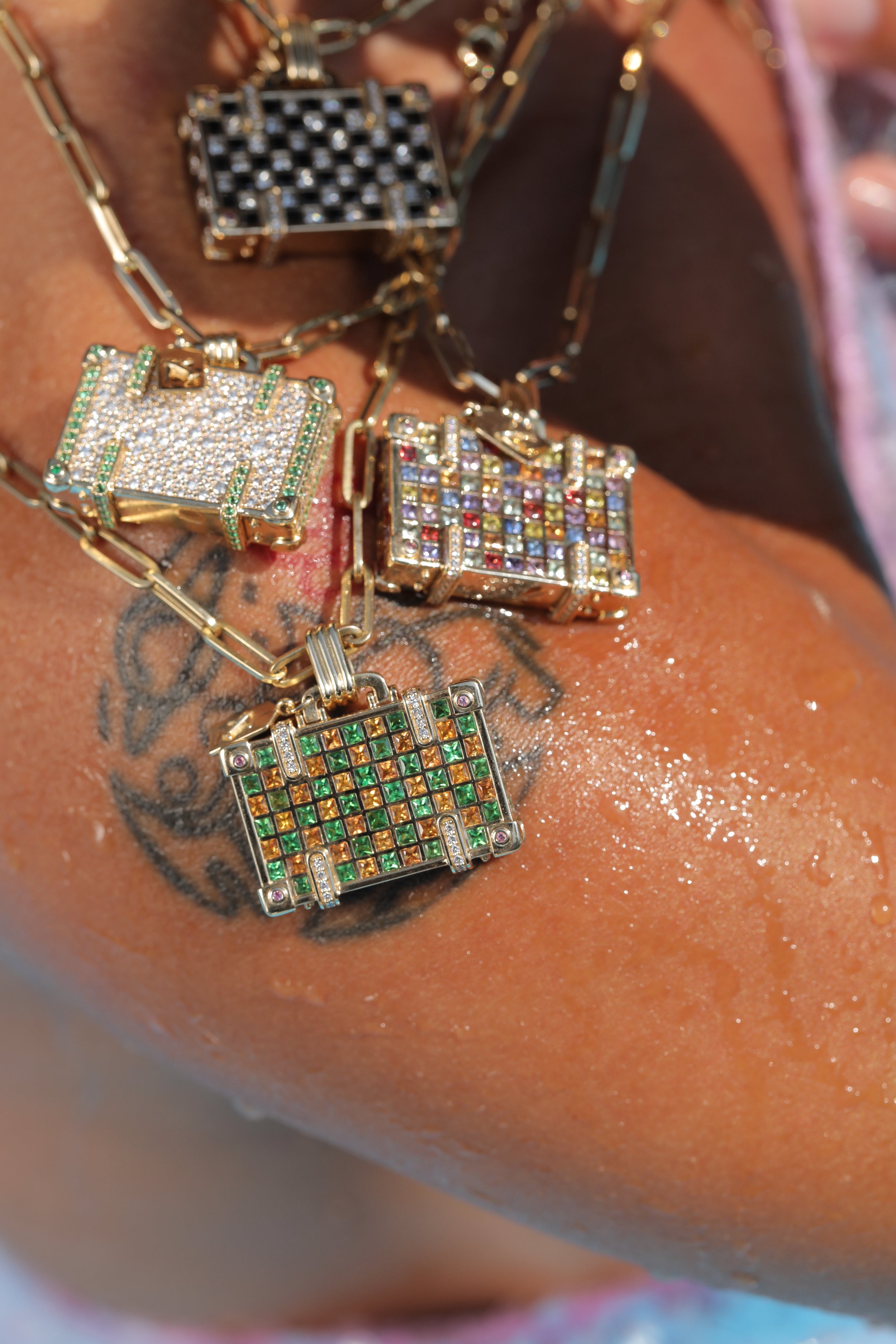 ‘ All Aboard’ 14K yellow gold large suitcase with tsavorites, orange and pink sapphires and diamonds.