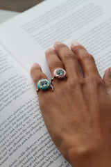18k yellow gold with Diamonds, Blue Topaz central stone, turquoise and black&white enamel details.